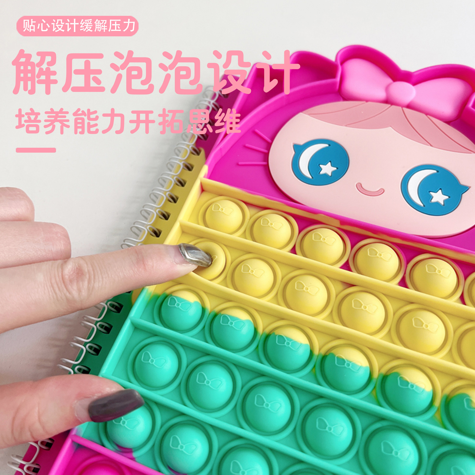 厂家定制创意卡通解压泡泡按按乐硅胶活页学生笔记本迷你手账本子