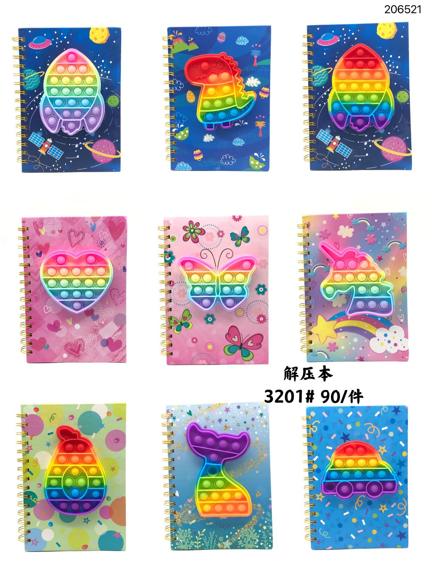 亚马逊热销 按压泡泡本子儿童解压彩虹笔记本 独角兽灭鼠先锋本子
