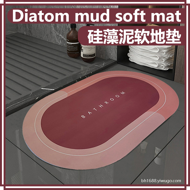 跨境爆款硅藻泥地垫卫生间吸水脚垫浴室门口家用防滑橡胶地垫地毯