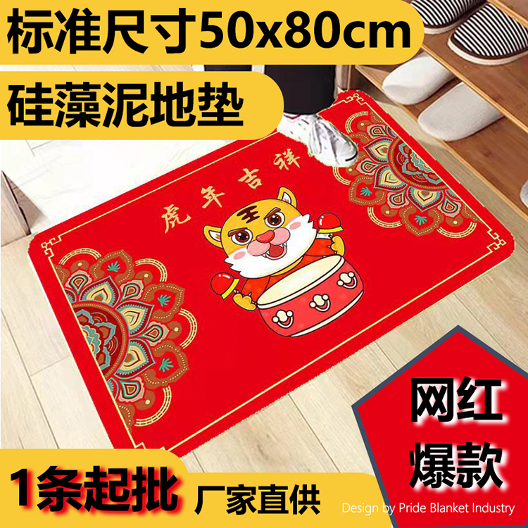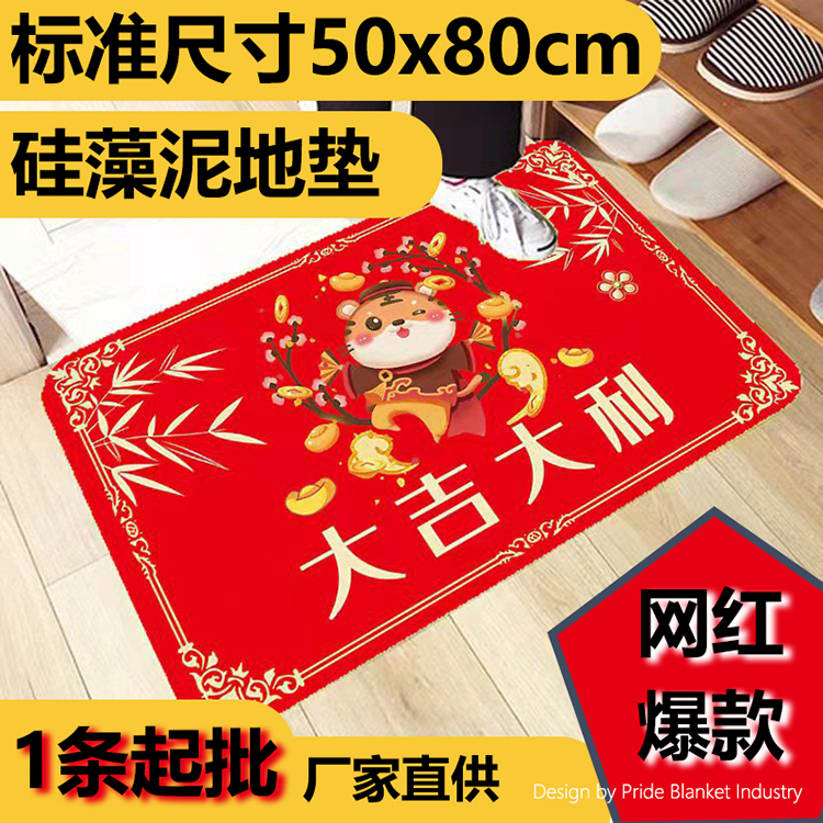 硅藻泥红色喜庆地垫吸水浴室地垫卫生间门口入户防滑脚垫新年地毯