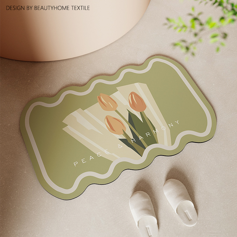硅藻泥浴室吸水软垫ins风郁金香花朵防滑地垫厕所速干耐磨踩脚垫