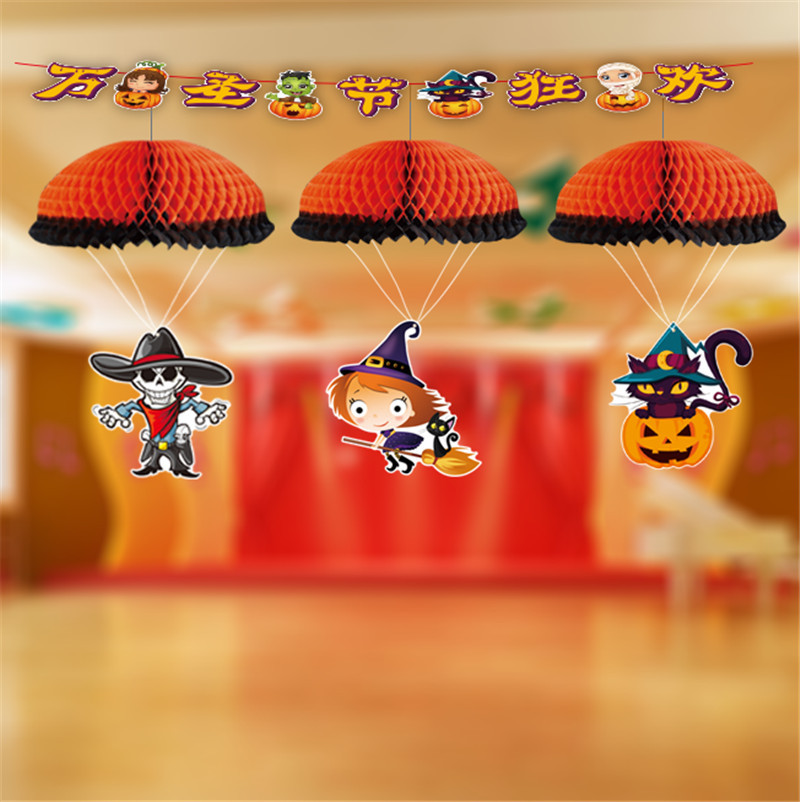 万圣节装饰品活动道具装饰儿童玩具折叠纸降落伞酒吧悬挂装饰批发