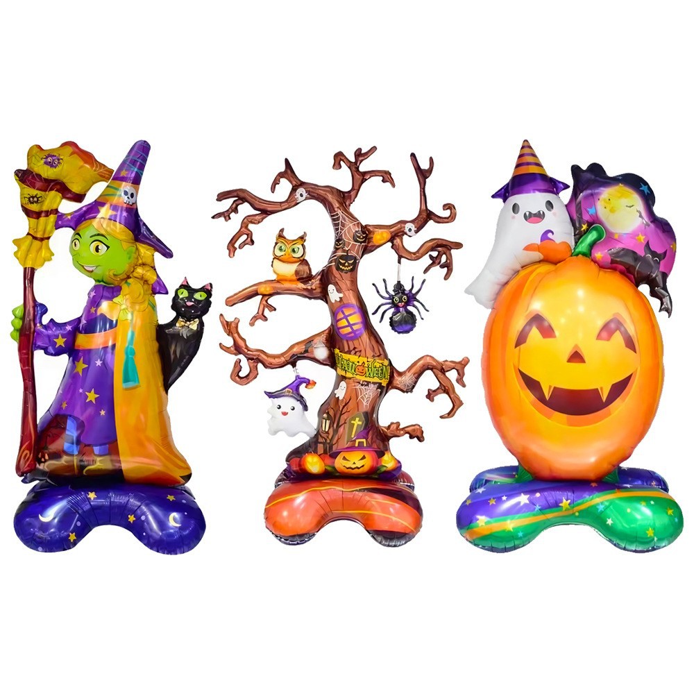 万圣节系列立体卡通底座幽灵南瓜枯树黑猫女巫铝膜气球派对装饰球