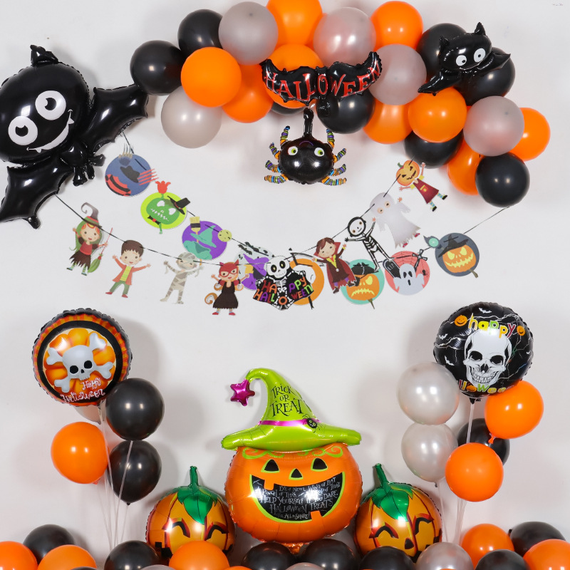 万圣节鬼妹铝膜气球套装Halloween 派对装饰南瓜幽灵蝙蝠coco