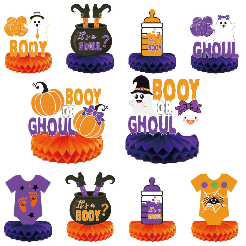 万圣节主题性别揭示派对蜂窝装饰 派对桌面装饰派对蜂窝摆件摆台