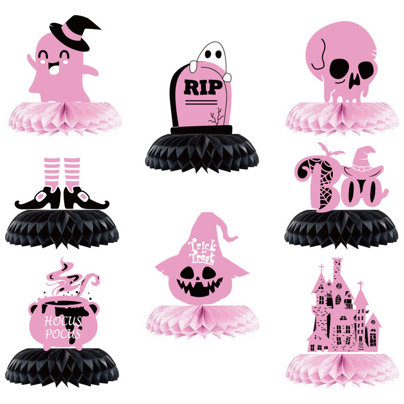 新款 粉色万圣节派对蜂窝装饰Halloween派对装饰蜂窝摆件摆台