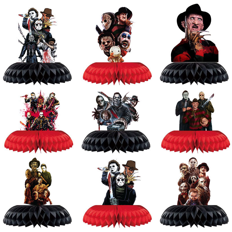 恐怖经典电影人物派对装饰蜂窝摆件 男孩女孩万圣节派对桌面摆台