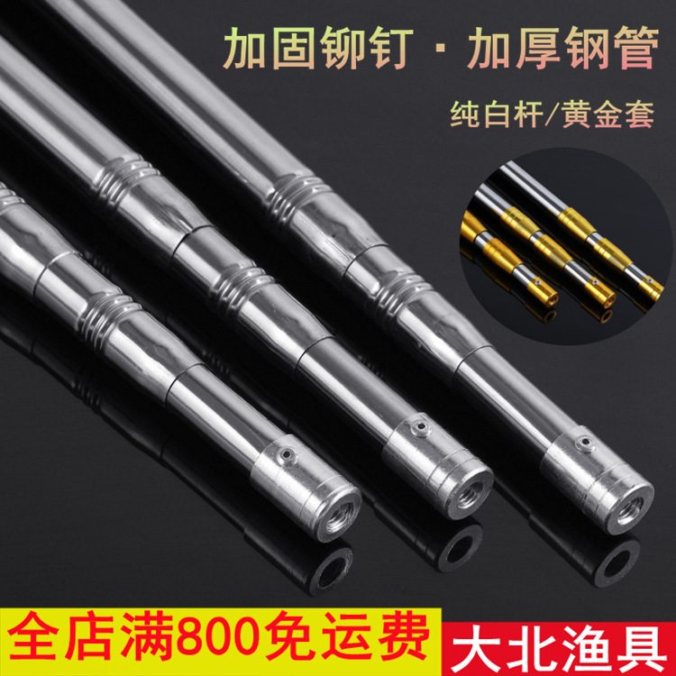 抄网杆加厚钢管不锈钢压花抄网杆定位鱼叉杆黄金套抄网竿钓鱼配件