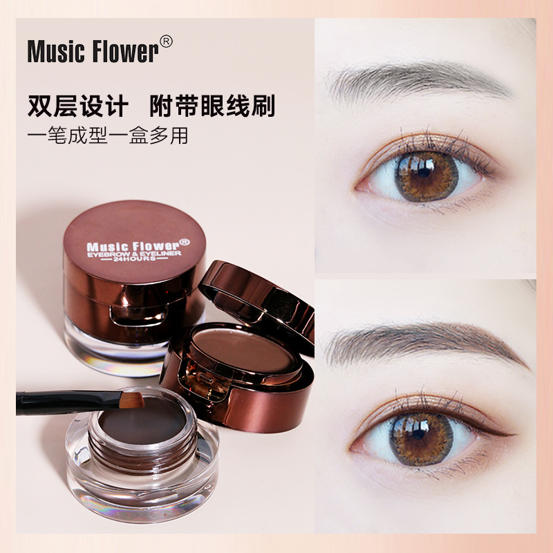 Music Flower/音乐花双色双层眉粉眼线膏二合一粉状膏状防水防汗