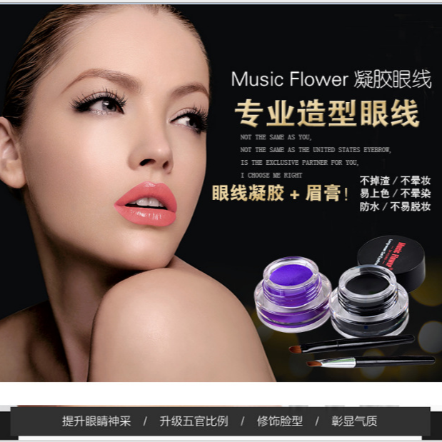 Music Flower速卖通烟熏梦幻眼线膏带刷厂家直销正品学生棕色