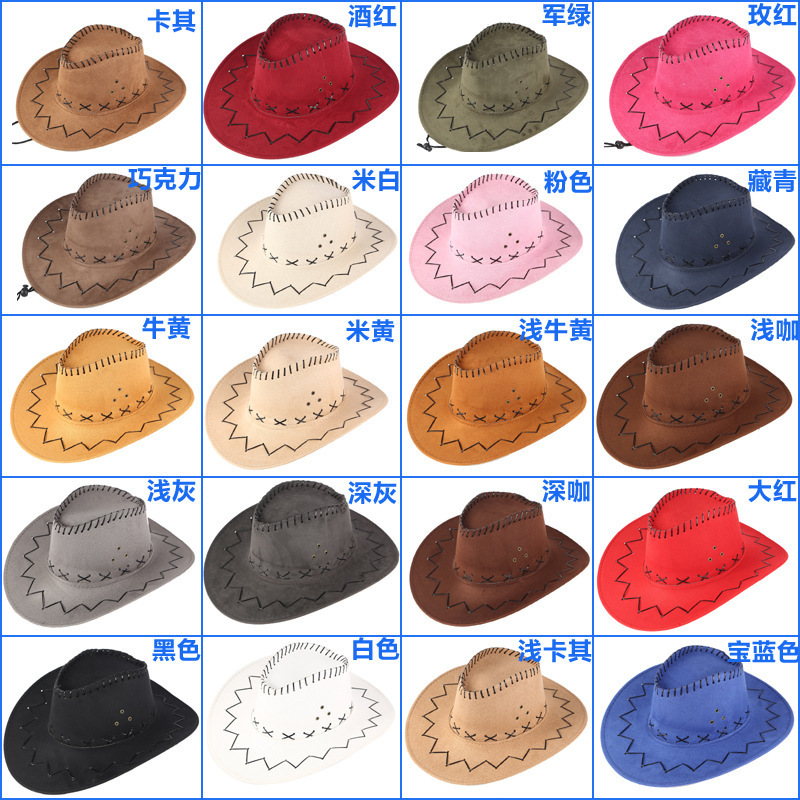 厂家批发定 西部牛仔帽 多颜色 复古骑士帽子男女炫酷 大沿遮阳帽
