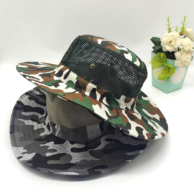 夏天迷彩大沿帽户外休闲钓鱼帽遮阳防晒帽农活帽渔夫帽子一件代发