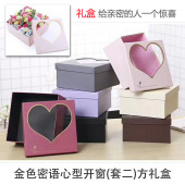 新款鲜花包装盒心形开窗方形礼盒创意心形烫金PVC天地盖盒鲜花盒