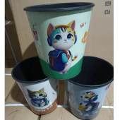 8764家用彩色垃圾桶家居大号加厚塑料贴花塑料桶卫生间厨房收纳桶