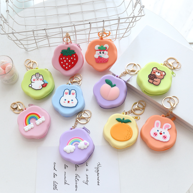 ins可爱花朵造型硅胶零钱包卡通硬币包钥匙包迷你耳机包包包挂饰