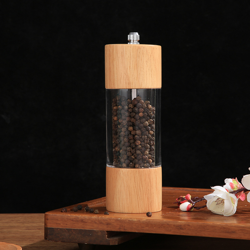 HZ358透明亚克力研磨器木质胡椒磨手动研磨器家用多功能调料瓶
