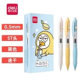 得力文具SA312插画系列速干按动中性笔0.5mmST头黑笔小清新水笔黑