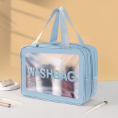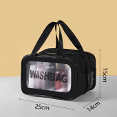 PU双层干湿分离洗漱化妆包高级感防水透明旅行收纳字母手提洗漱包