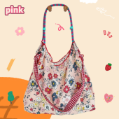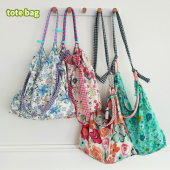 韩风夏季大容量手拎单肩包抽绳购物袋布包小清新碎花托特包腋下包
