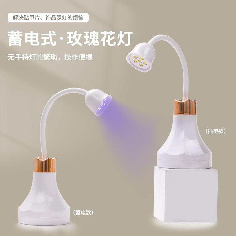 新款台式蓄电式玫瑰花光疗灯网红充电式白莲花美甲烤灯贴甲片专用