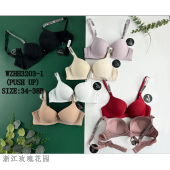 烫钻肩带光面文胸PUSH UP聚拢女士文胸内衣外贸RUMU如慕欧美纯色