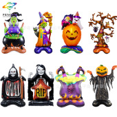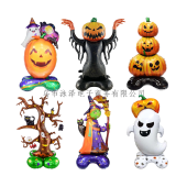 跨境万圣节铝膜造型气球站立墓碑女巫南瓜幽灵树鬼节派对装饰气球