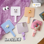新款卡通萌宠手持化妆镜ins风高颜值学生可爱手柄镜随身带小镜子