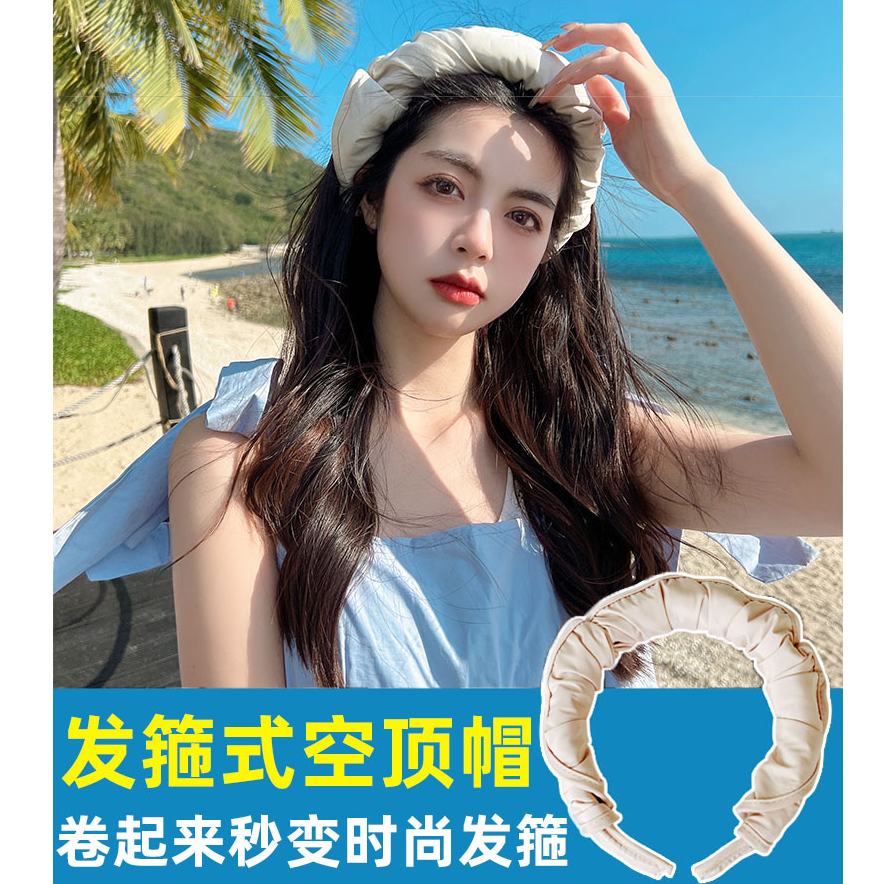 夏季新款女士遮阳帽时尚空顶发箍帽子骑车户外防晒帽子韩版卷卷帽