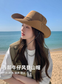西部牛仔帽山系露营抽绳渔夫帽子太阳遮阳徒步防晒户外登山钓鱼帽