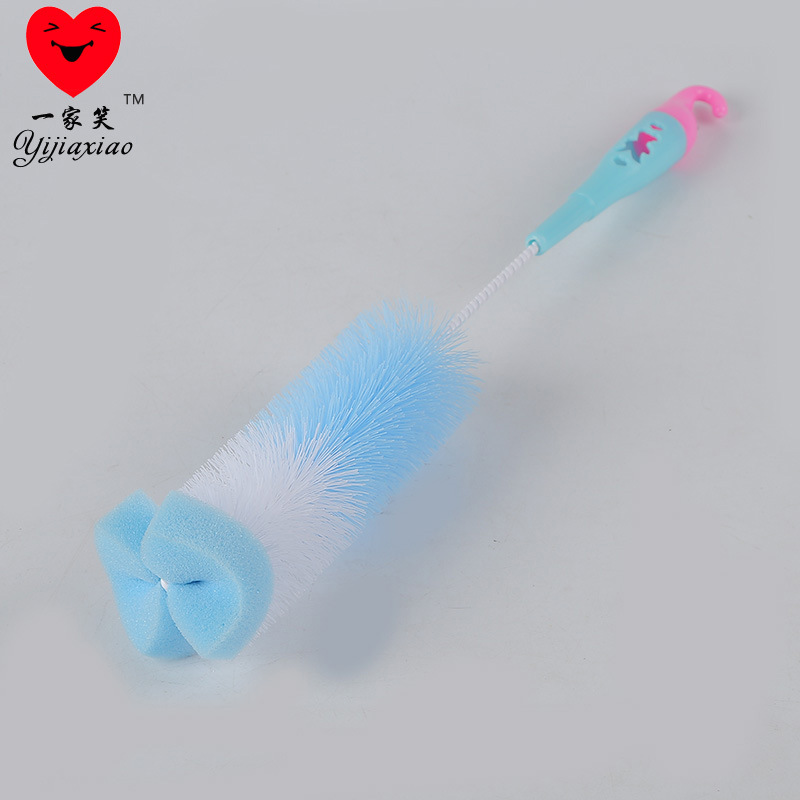 厂家直销婴儿奶瓶刷 奶嘴刷 带挂钩清洁海绵头子母双色海绵刷批发