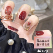 短款渐变郁金香复古花花穿戴甲温柔少女ins风美甲片假指甲批发