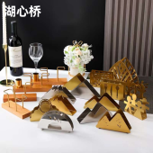 多款式不锈钢镀金镂空原色纸巾架餐巾纸收纳分配架酒店餐厅宴会用