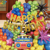 跨境音乐节英语生日乳胶气球套装迪斯科吉他收音机滑冰鞋派对装饰
