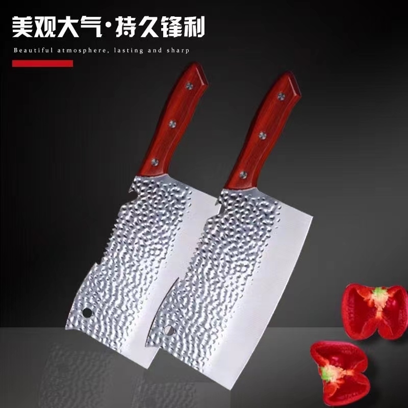 厨房用品锤纹木柄菜刀持久锋利菜刀杀鱼斩切肉切片厨房家用菜刀