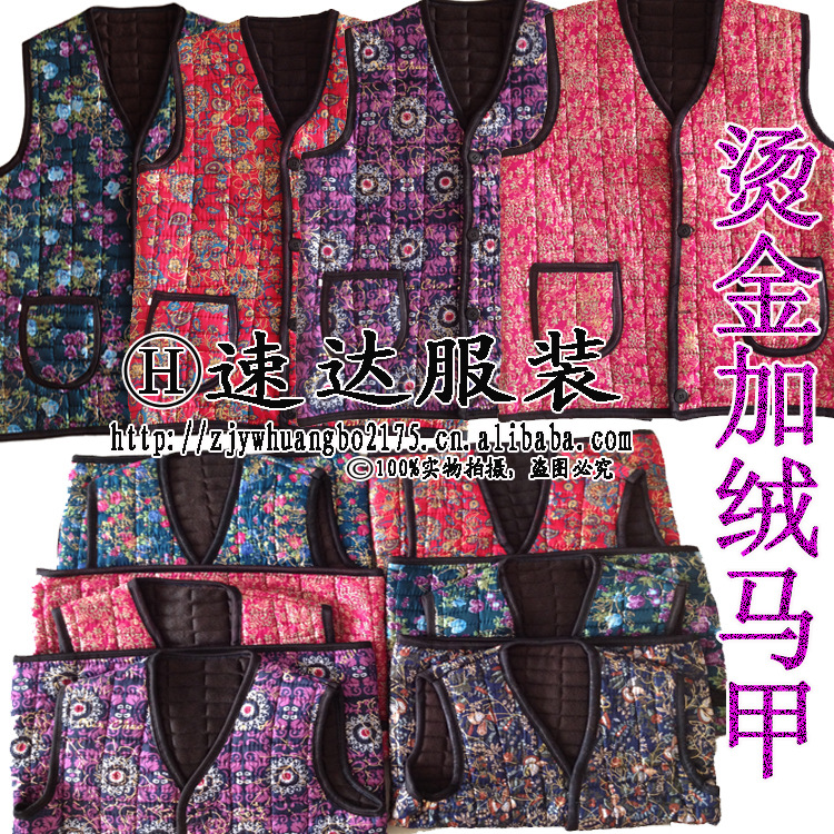 2021秋冬新款中老年女士马甲加绒加厚保暖烫金马甲妈妈装批发