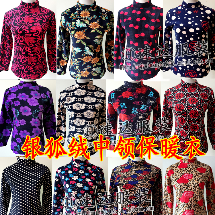 双面加绒上衣加绒加厚中领保暖内衣金貂绒不倒绒妈妈装打底衫批发