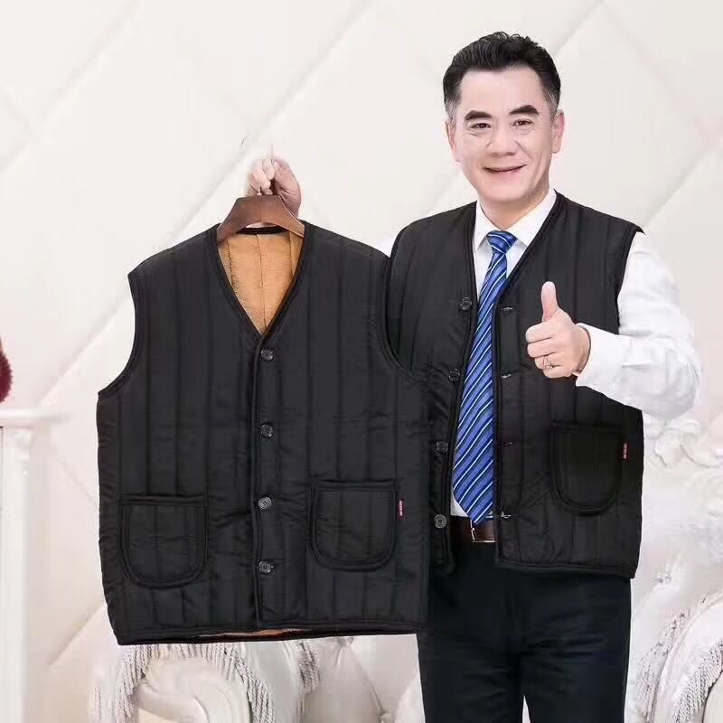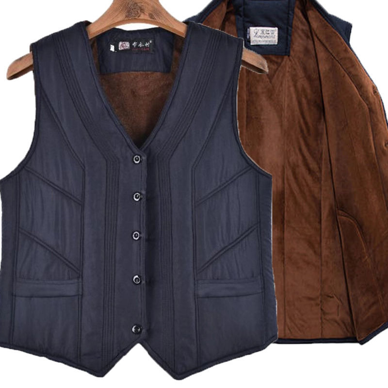 秋冬中老年人爸爸装加绒加厚大码男士棉马甲驼绒老人保暖背心男式