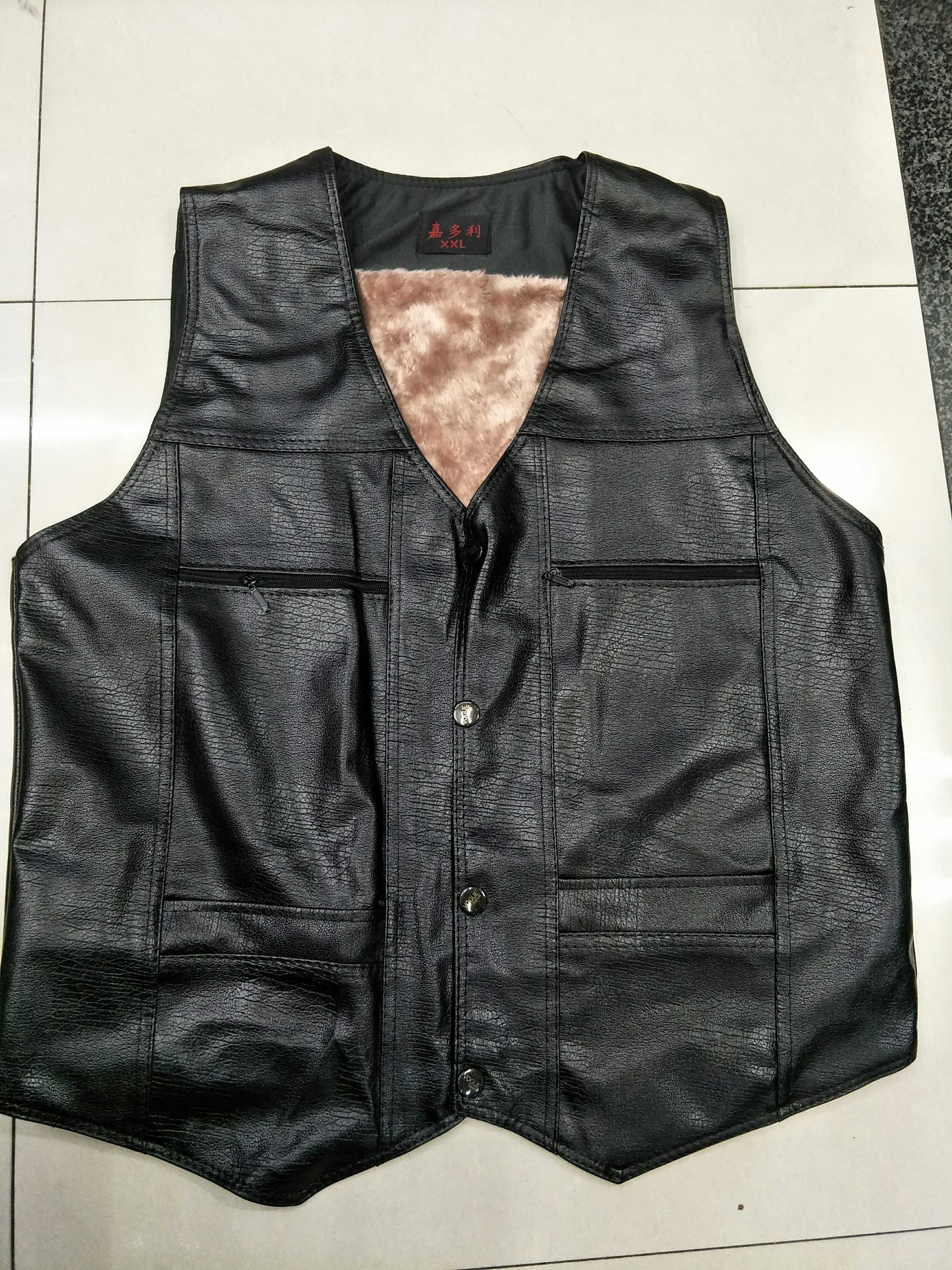 秋冬皮毛一体马甲男牛皮多口袋男士马甲中老年马甲大码皮马甲背心