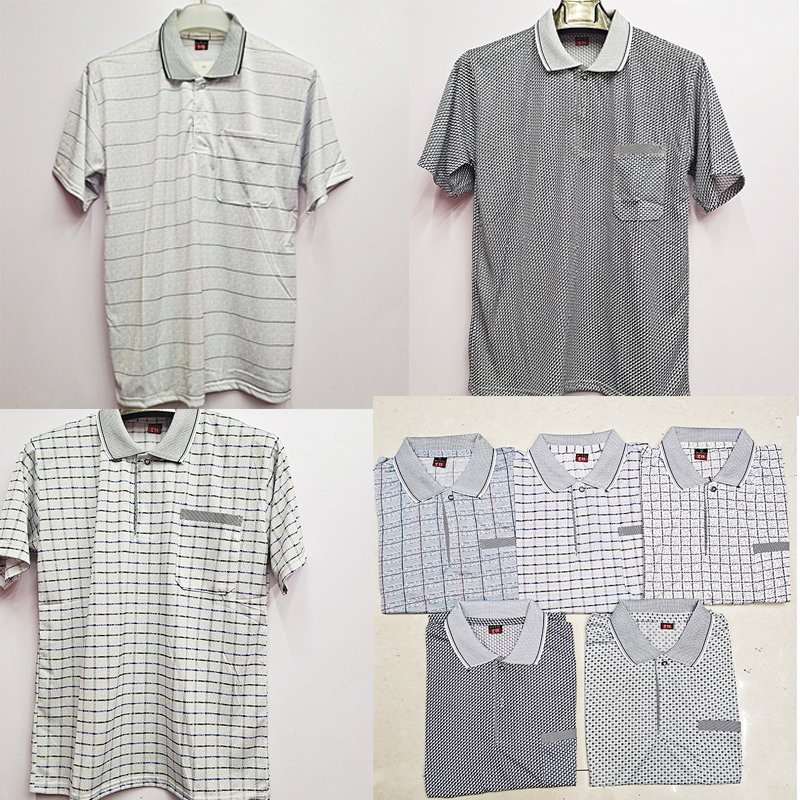 中老年男士爸爸装爷爷装 男式翻领印花长袖OPP衫外穿 商务装