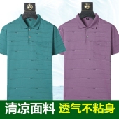 2021年夏季中年男休闲T恤衫有口袋老年人爸爸装男士冰丝翻领T恤衫