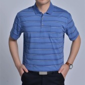 2018年新款夏装男士短袖T恤衫中老年男装条纹衫宽松大码翻领短袖