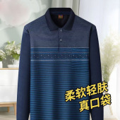 春季中老年长袖T恤男宽松翻领中年爸爸装老年人长袖条纹上衣男装