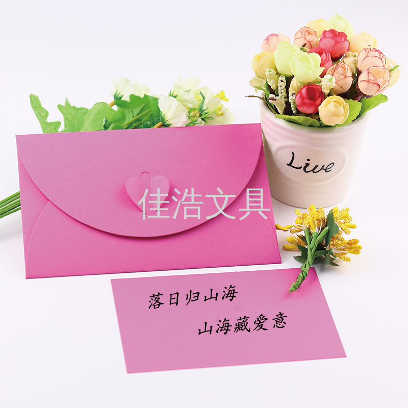 爱心扣纯色高档创意信封结婚会员新生寄语纸质开口信封文件夹