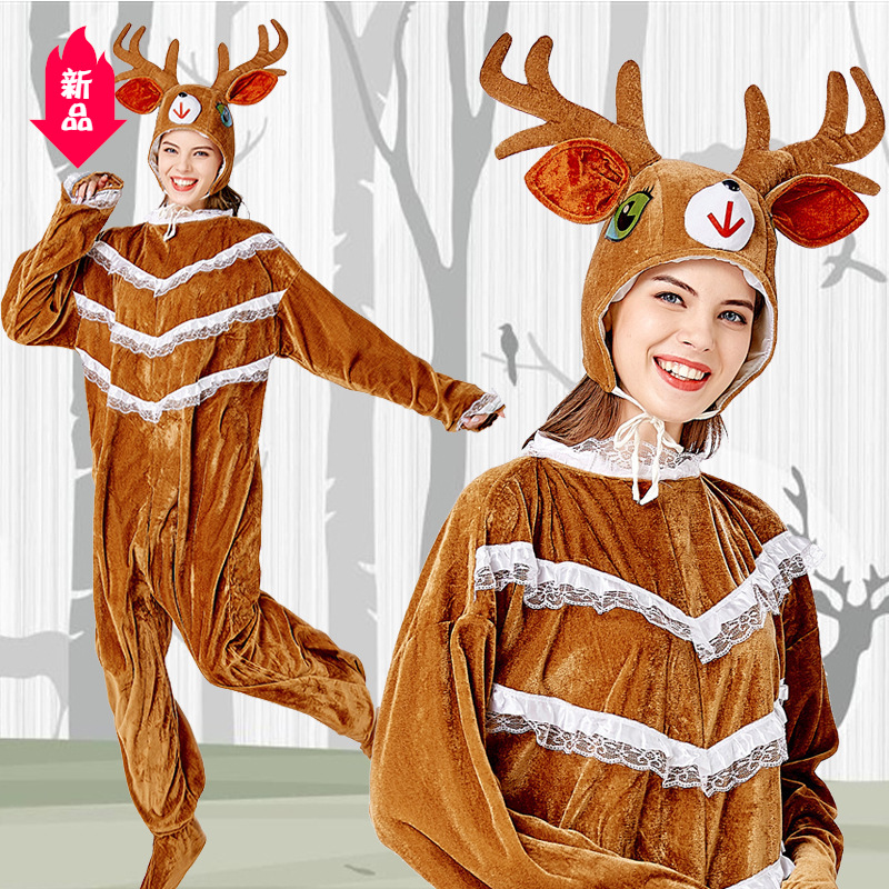 圣诞节麋鹿服装成人卡通棕色连体衣演出服毛绒装三件套行走人偶装