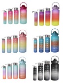 现货大水杯大容量塑料运动水杯三件套跨境新品渐变色磨纱套杯厂家