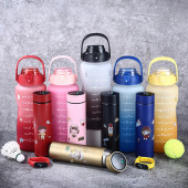 网红新品双饮渐变智能保温杯套杯大容量塑料运动水瓶跨境厂家批发