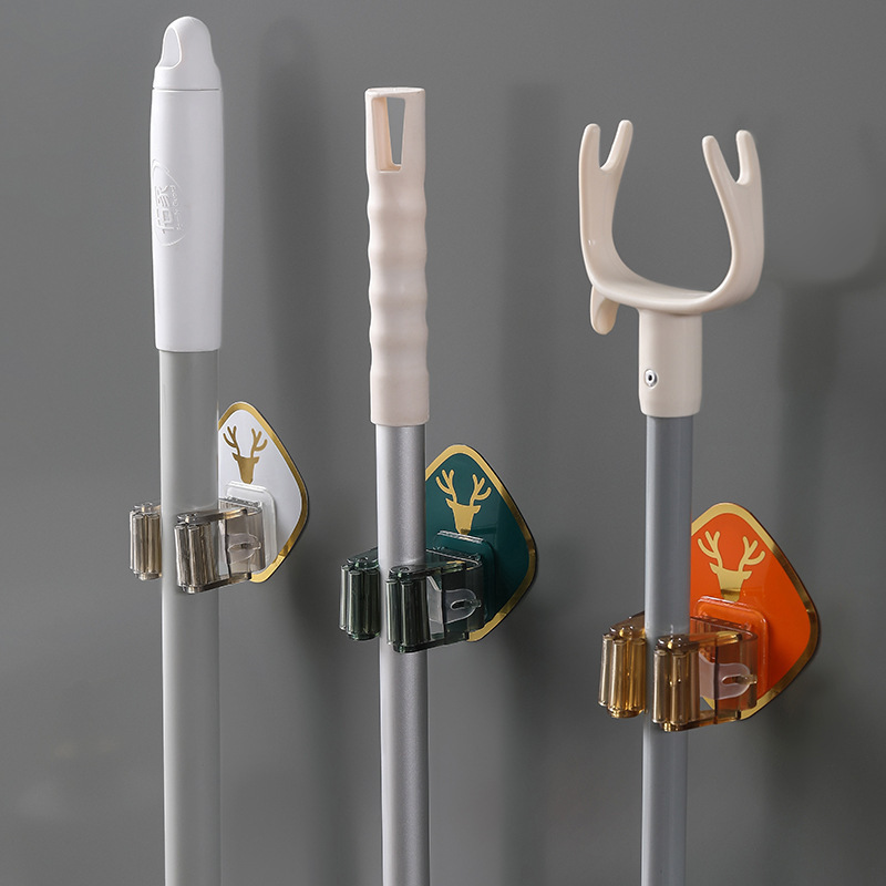 拖把架扫把卡座拖把挂钩强力无痕免打孔拖布夹浴室壁挂架卡通粘钩