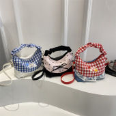 时尚法式格子饺子包手拎小包新款夏天清新格子拼接链条斜挎单肩包