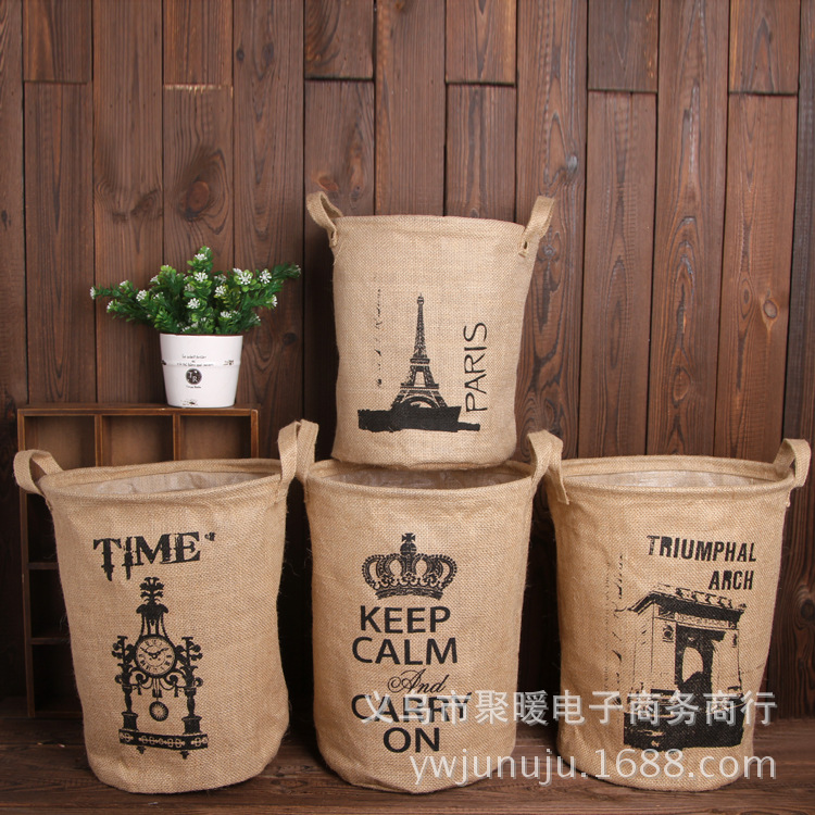 【鱼的故事】厂家批发 zakka黄麻收纳桶 环保圆桶 洗衣桶 大号