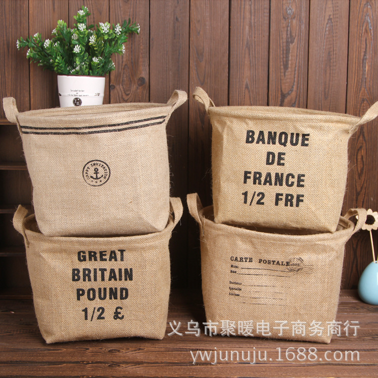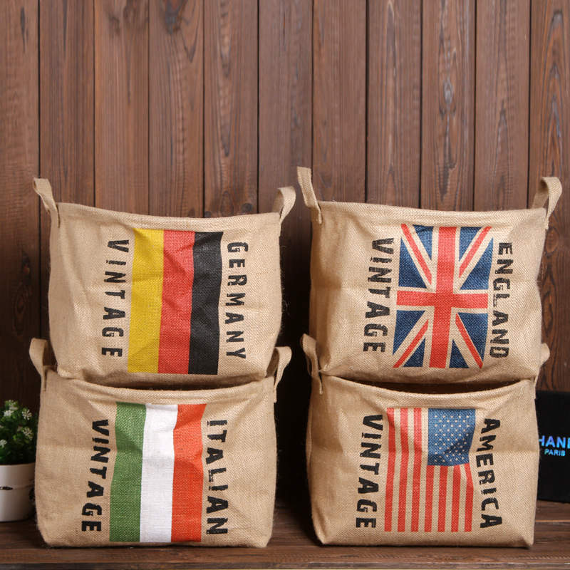 【鱼的故事】zakka黄麻国旗收纳桶/袋/筐/箱桌面多功能杂物储物篮